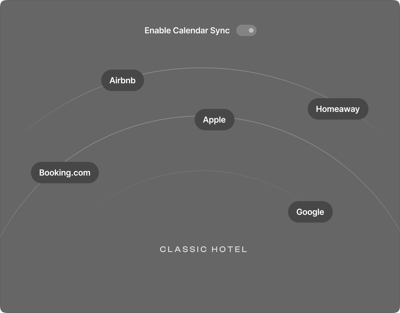 HotelHub features a comprehensive calendar with monthly, weekly, daily, and timeline views. Easily sync it with external platforms to prevent overbookings. Connect calendars from Booking.com, Airbnb, HomeAway, Apple, and TripAdvisor to manage all your reservations from a single, unified dashboard.