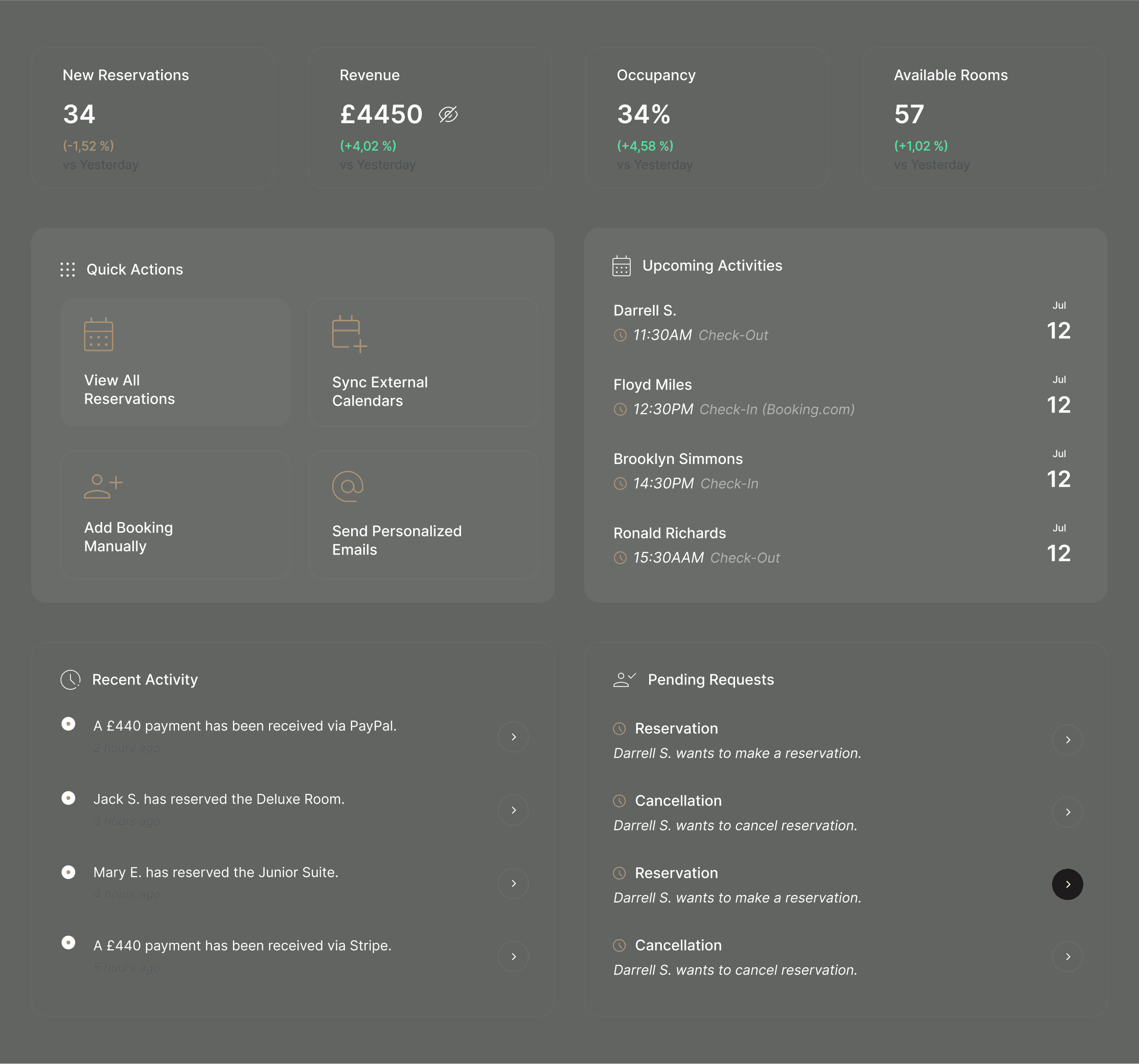 Hotel management dashboard designed specifically for hotel managers, providing intuitive tools and in-depth insights to efficiently oversee reservations and overall hotel operations.