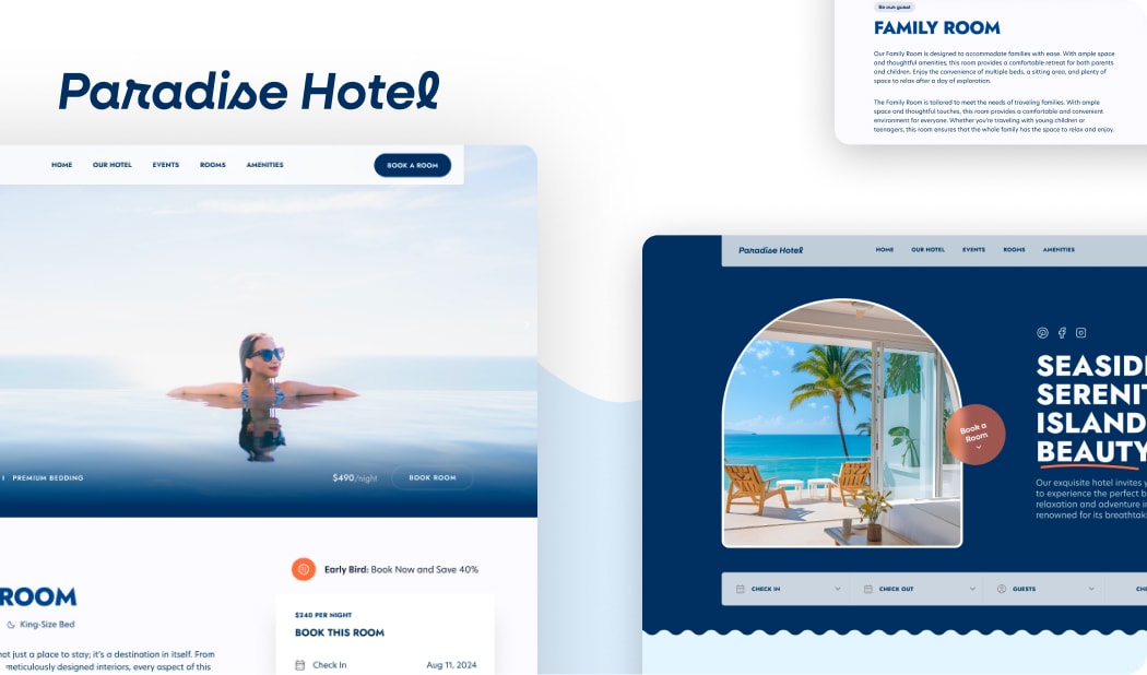 Alternatively, you can choose a pre-built page and customize it to meet your needs. You can even mix and match sections to build your own unique room pages.