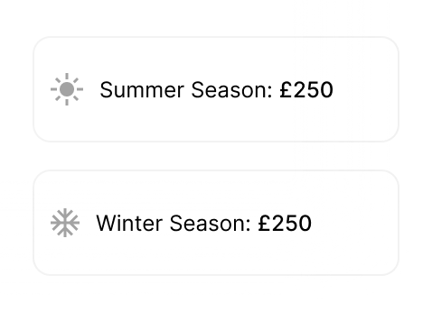 Set base prices, weekend prices, and custom prices for each day to offer the best rates to your guests, and adjust prices based on the season to maximize your revenue.